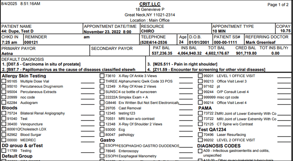 This report shows all the superbills during a selecteddate range