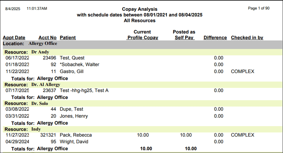 | Difference | Copay Difference amount (Current profile Copay minus Posted by Self Pay) |