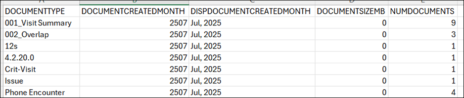 | Num of Documents | Number of documents created during the selected date range |